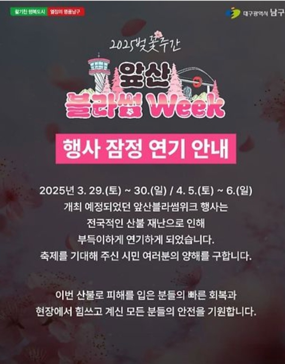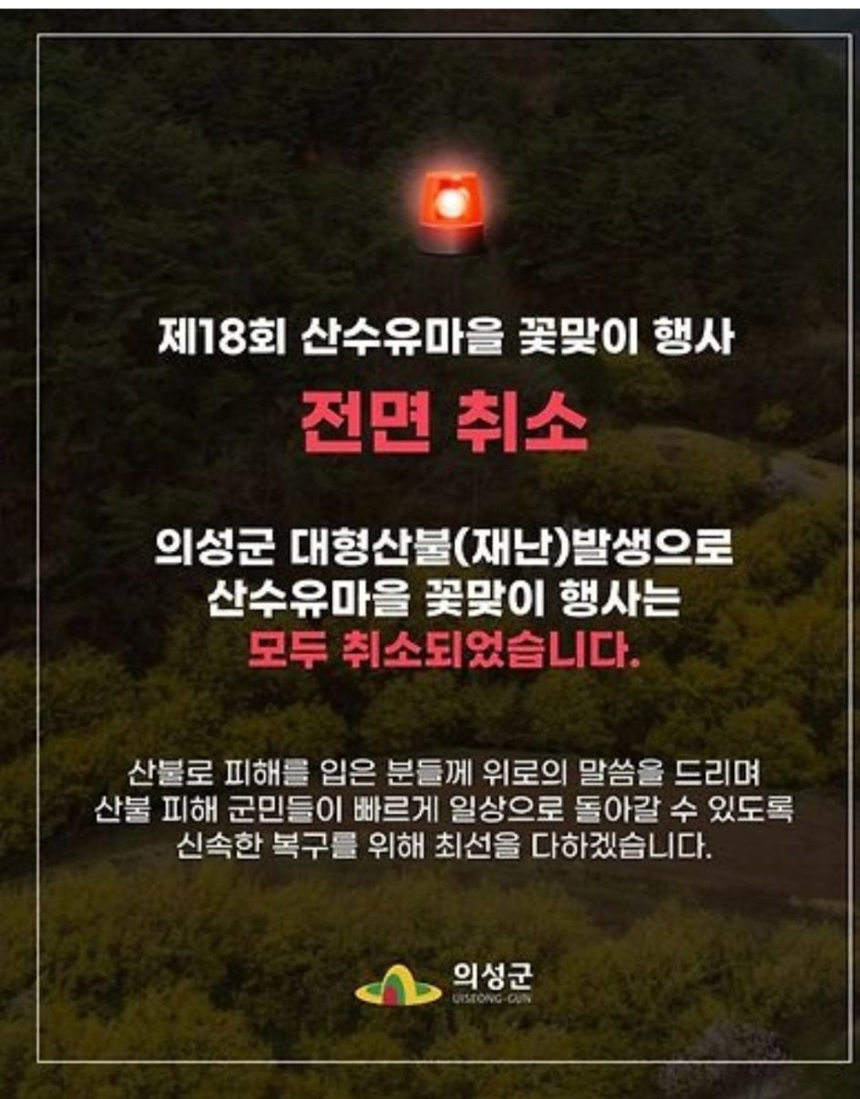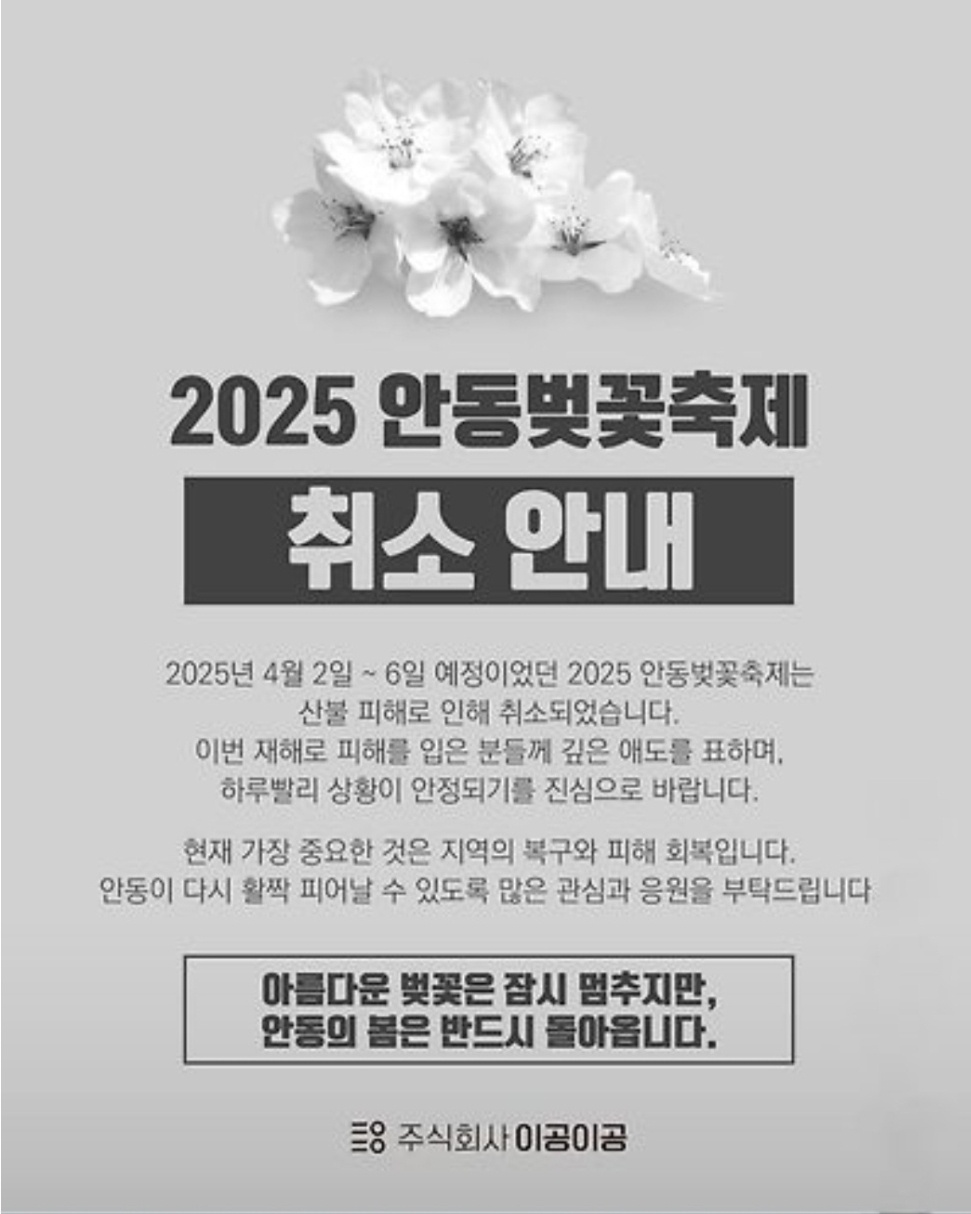 최근 전국적으로 확산된 대형 산불의 영향으로, 봄을 맞아 많은 분들이 기다리던 지역 벚꽃축제들이 연이어 취소되고 있습니다.